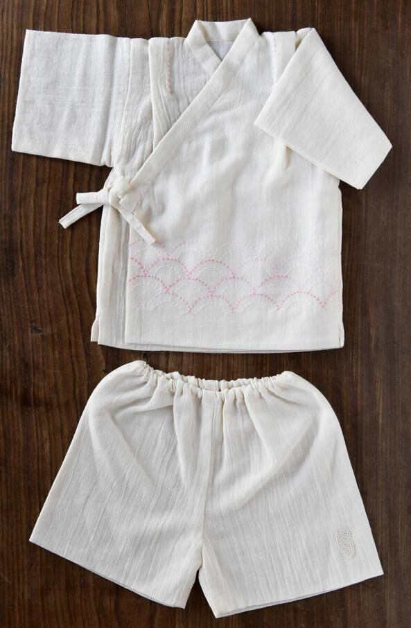 肩上げを手縫いで施しています。糸をほどけば、赤ちゃんの成長に合わせてサイズ調整ができ、より永くお召し頂けます。